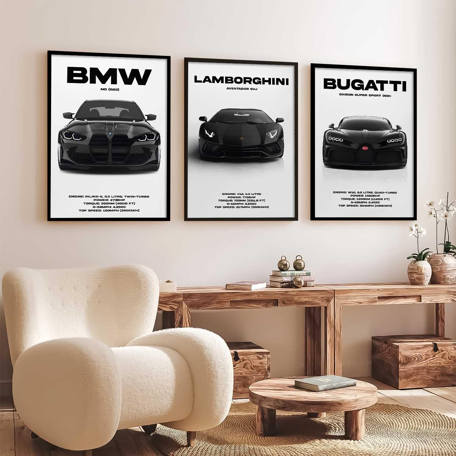 • Printing: Using the newest print technology on 300 GSM photographic paper, these car posters for walls with frames are printed, producing stunning, vivid artwork. When printing, colors may differ slightly. Our designs are created with 300 DPI resolution and 4K images. Your space is transformed by these Sport Car Wall Paintings