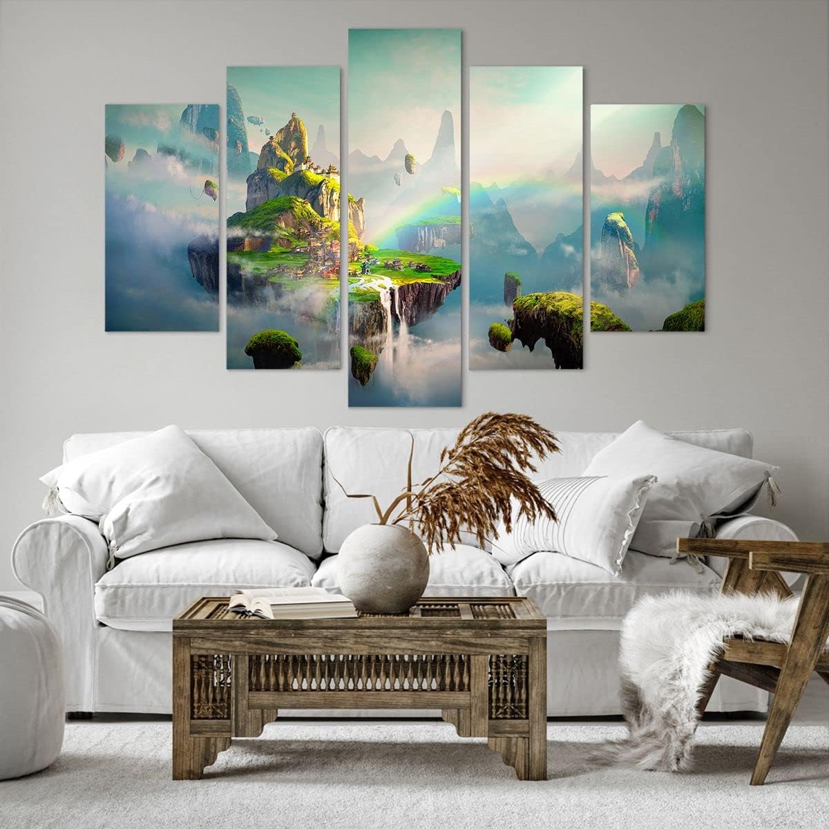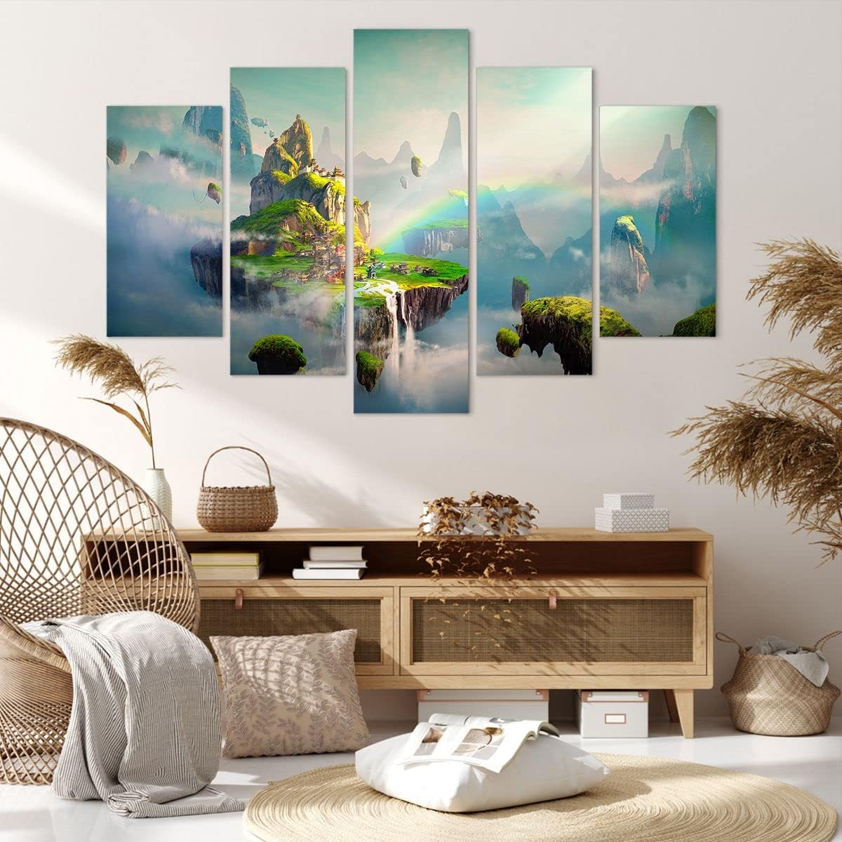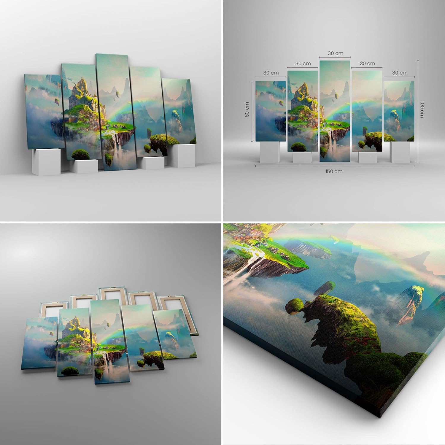 - Les tableaux muraux créent un climat fantastique. Le produit offert est un kit de tableau décoration qui se compose de 5 éléments. L’universalité des images sur toile moderne vous permet de l’utiliser dans n’importe quel intérieur décoré de style scandinave, glamour, bohème, minimaliste ou même industriel.